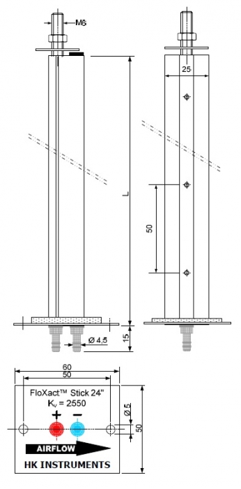 • měřicí sonda je určena k měření rychlosti vzduchu v potrubí